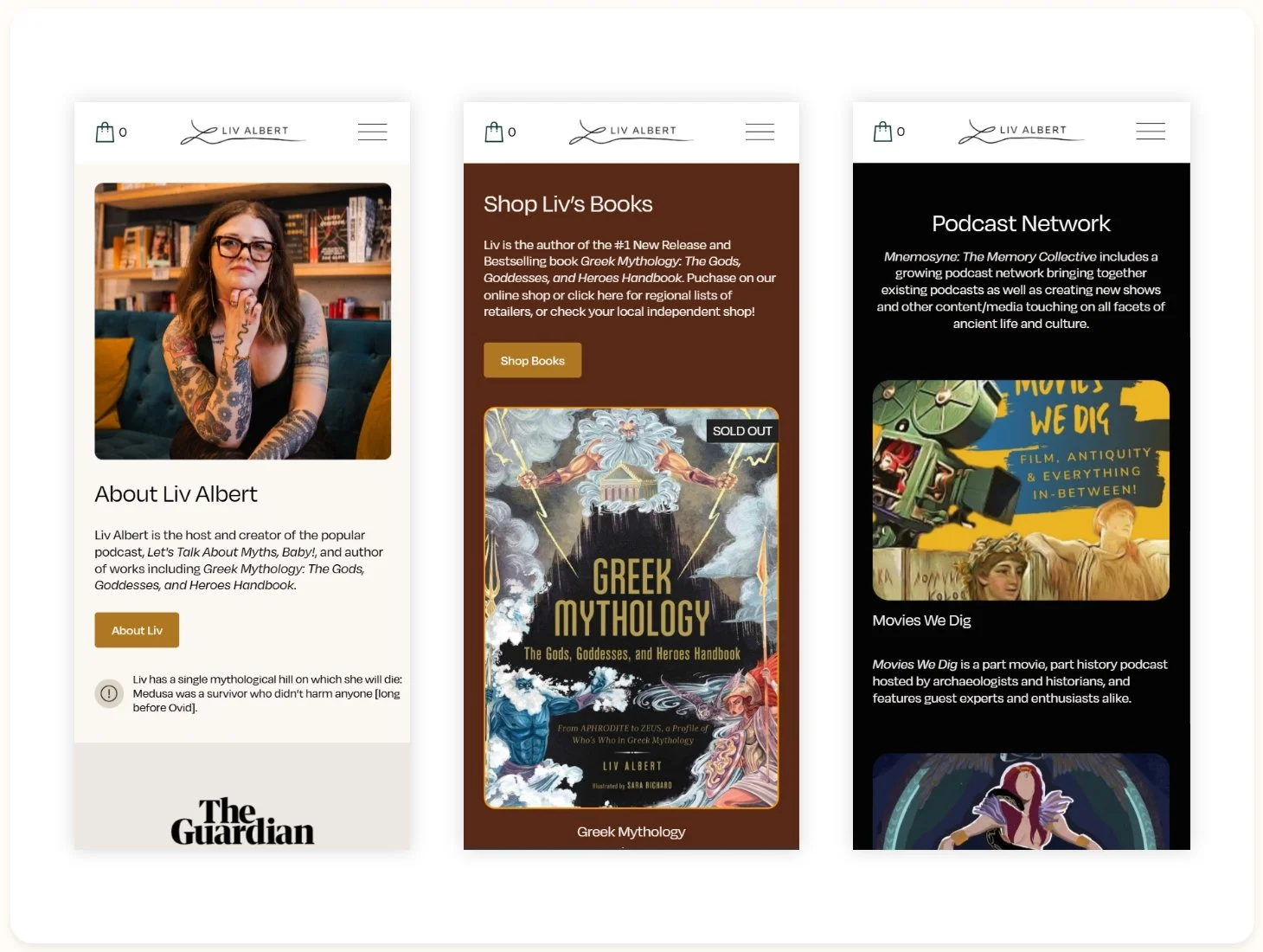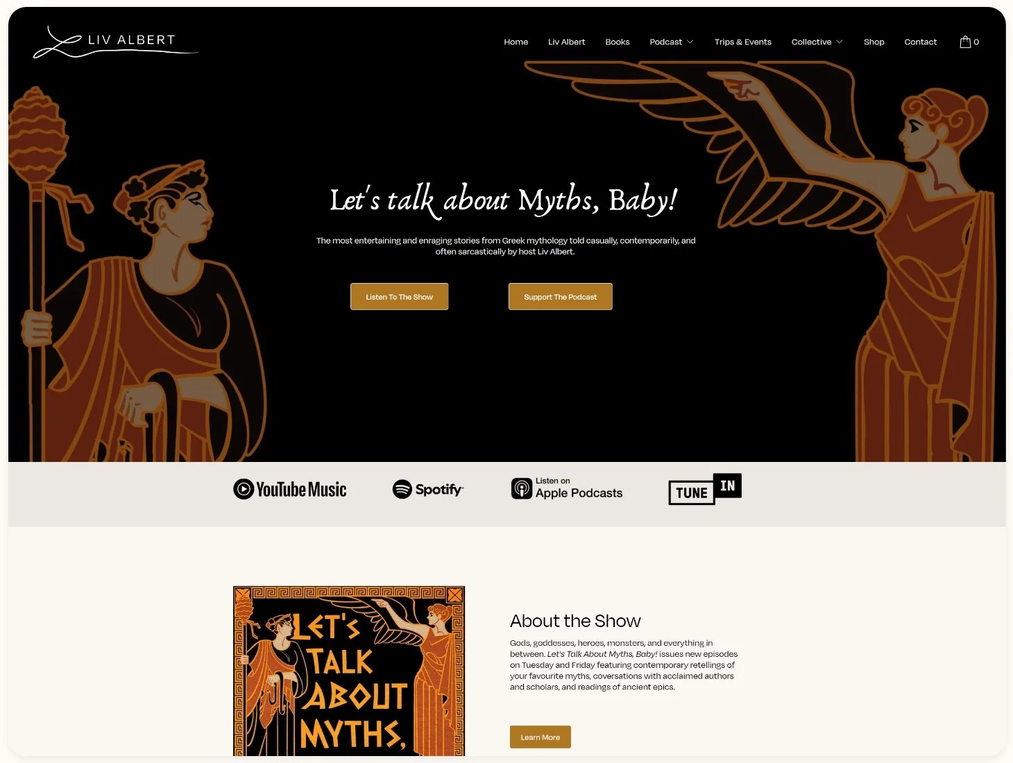 Let’s Talk About Myths, Baby! required a fresh website to showcase their newly-created collective and podcast network, Mnemosyne, as well as the published works of the show’s host, Liv Albert. Be Good partnered with Liv and her co-creator, Michaela Pangowish, to create a new website with sections for Liv’s work as a published author and speaker, the Let’s Talk About Myths, Baby! podcast, and the Mnemosyne Collective, making it easier for their website visitors to navigate and find the areas of the site they are interested in.